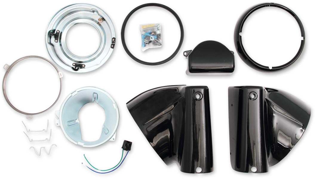 - Handlebar clamp cover, headlight mount, trim ring and all other necessary parts and hardware included for a complete installation